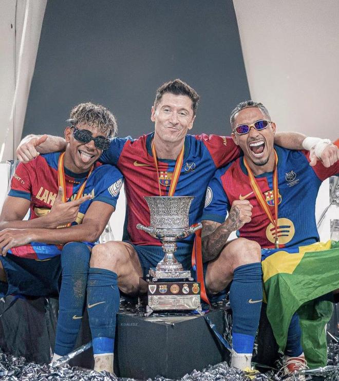 如今机会来了,只要战胜阿拉维斯,巴萨就能反超皇马,以2分优势暂时登顶西甲。在这样一个节骨眼上,巴萨迎来一个好消息,三叉戟,终于能一起上场了。拉菲尼亚、亚马尔、莱万三大攻击手几乎没凑齐过,弗里克排兵布阵就像“少带了积木”,拼不成完整进攻体系。莱万(37岁):西甲10场8球,是巴萨目前最稳定的得分点;亚马尔(18岁):天才横溢,13场6球8助,本赛季巴萨最具想象力的爆点;拉菲尼亚(28岁):伤愈回归,特点鲜明,持球推进与远射是武器库。