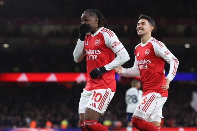 英超第12轮北伦敦德比,阿森纳主场对阵热刺,阿森纳边锋埃泽上演帽子戏法,成为北伦敦德比历史上第四位上演帽子戏法的球员。